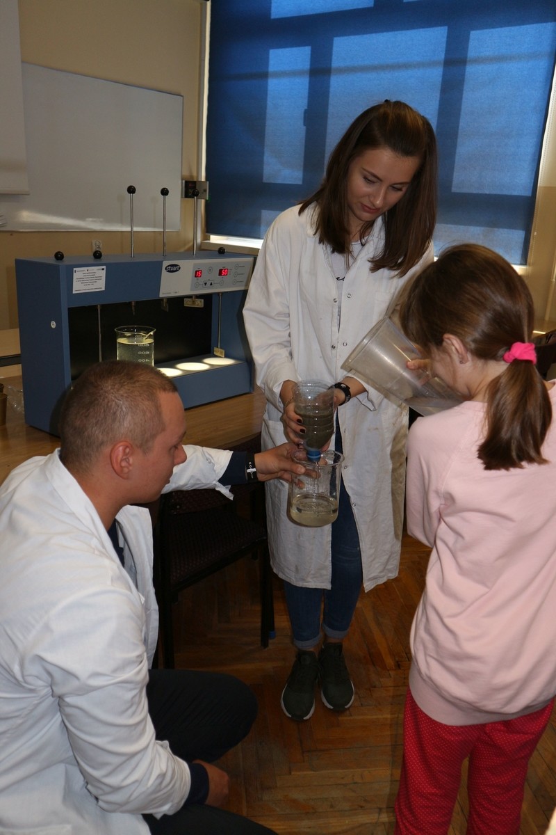 30 października br. na Wydziale Budownictwa, Inżynierii Środowiska i Architektury Politechniki Rzeszowskiej gościła grupa uczniów z trzeciej klasy Szkoły Podstawowej Nr 6 - im. Ojca Świętego Jana Pawła II z Przemyśla. Studenci naszego koła naukowego - Małgorzata Szczepaniec, Paulina Szczyrba i Mateusz Czadowski przeprowadziła dla nich zajęcia edukacyjne pt. "Od kranu do rzeki".